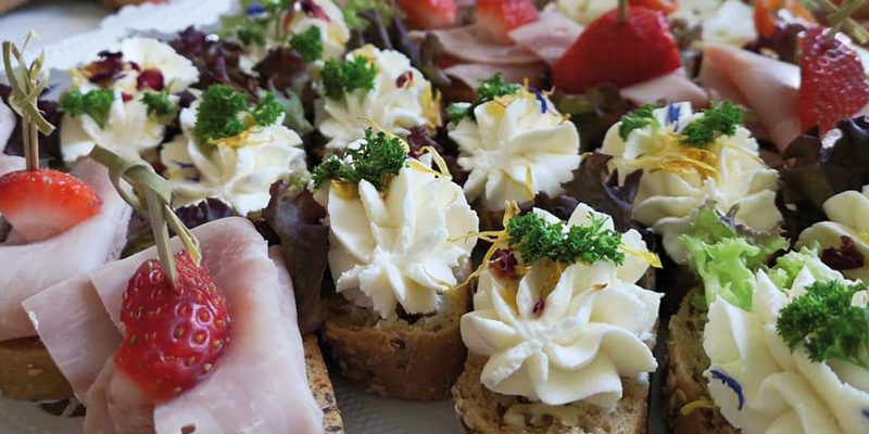 Canapés mit Wurst, Käse und vegetarisch