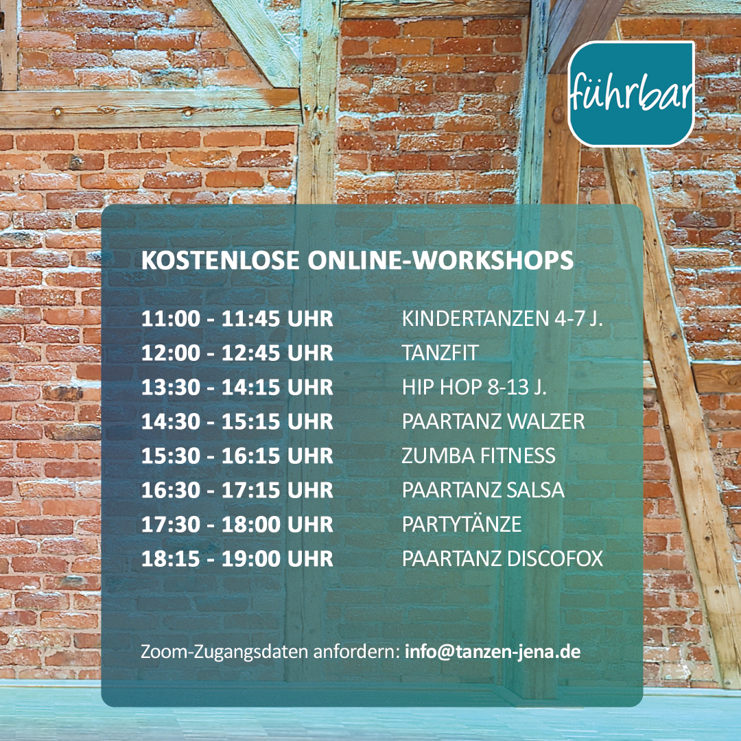 Du benötigst etwas Platz zum Tanzen im Wohnzimmer/Küche/Garage/Dachboden sowie einen PC/Tablet/Handy mit Internetzugang und ggf. Kamera. Unsere Workshops streamen wir mit Zoom.
